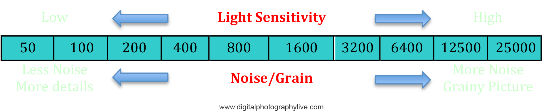 light source, you will also get more digital noise. Digital noise is the